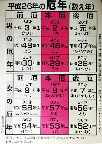 | 平成26年2月1日 | 平成26年厄年表(数え年)![]() |