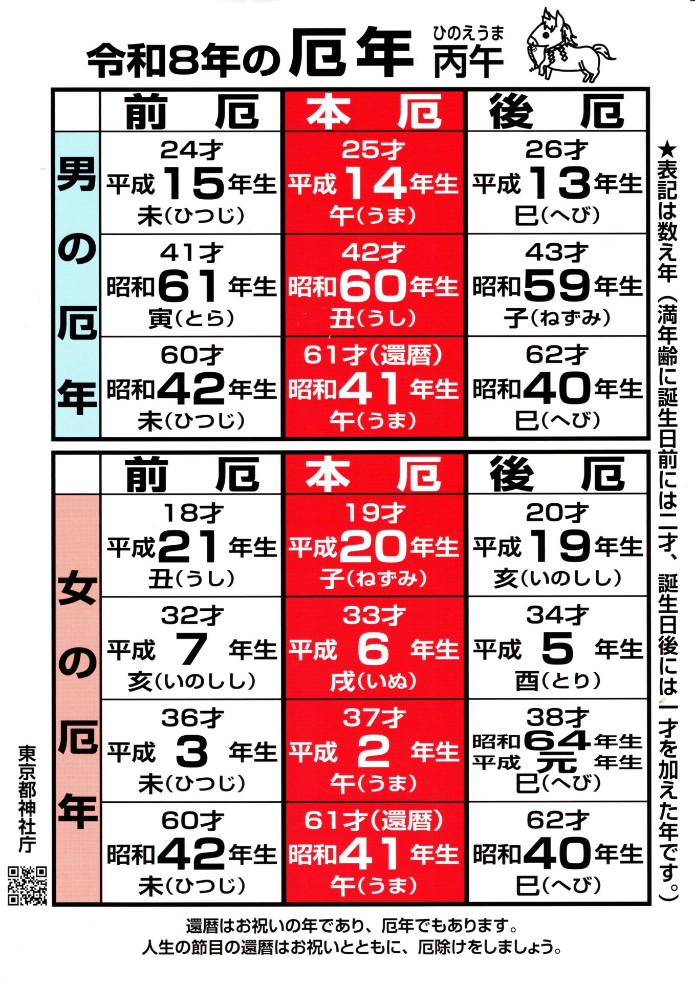 厄年に当たる方(前厄・本厄・後厄)はまず厄年厄祓い祈願をお受け下さい。