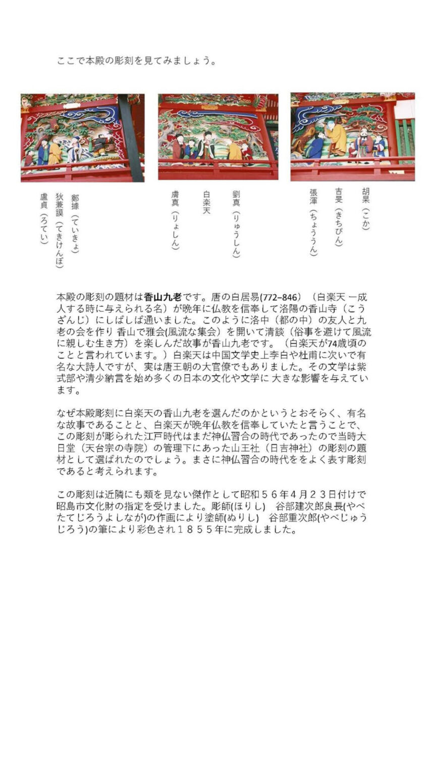 「日吉神社の彫刻」ファイルは以下のリンクよりダウンロードできます。日吉神社の社殿の彫刻 PDF(約2.5MB)